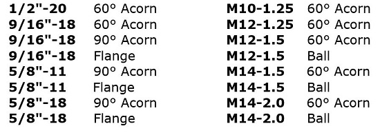 | Nissan Titan | ’04 & Older | 6 x 5.5″ | M12 X 1.25 | Nut | 78mm |